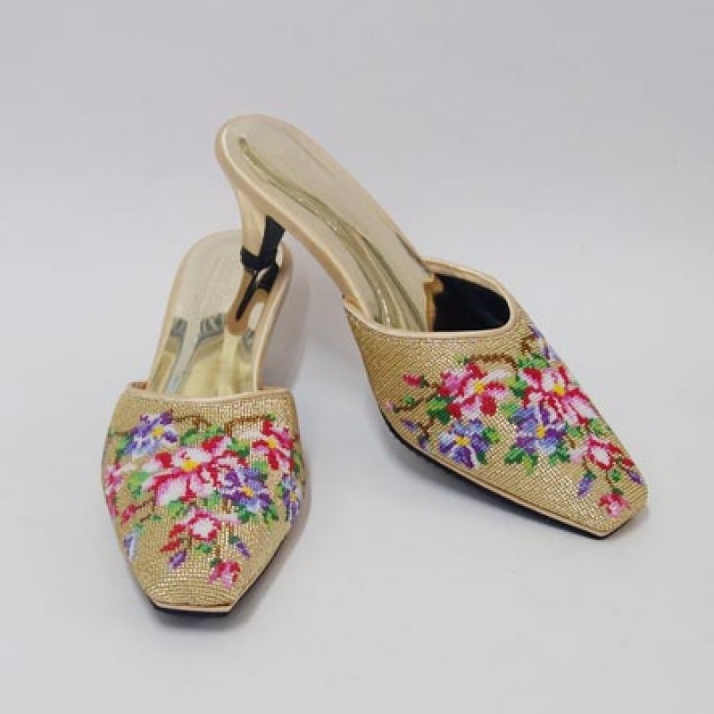 The materials used include Silk cloth, thread and multi coloured Tiny glass beads.