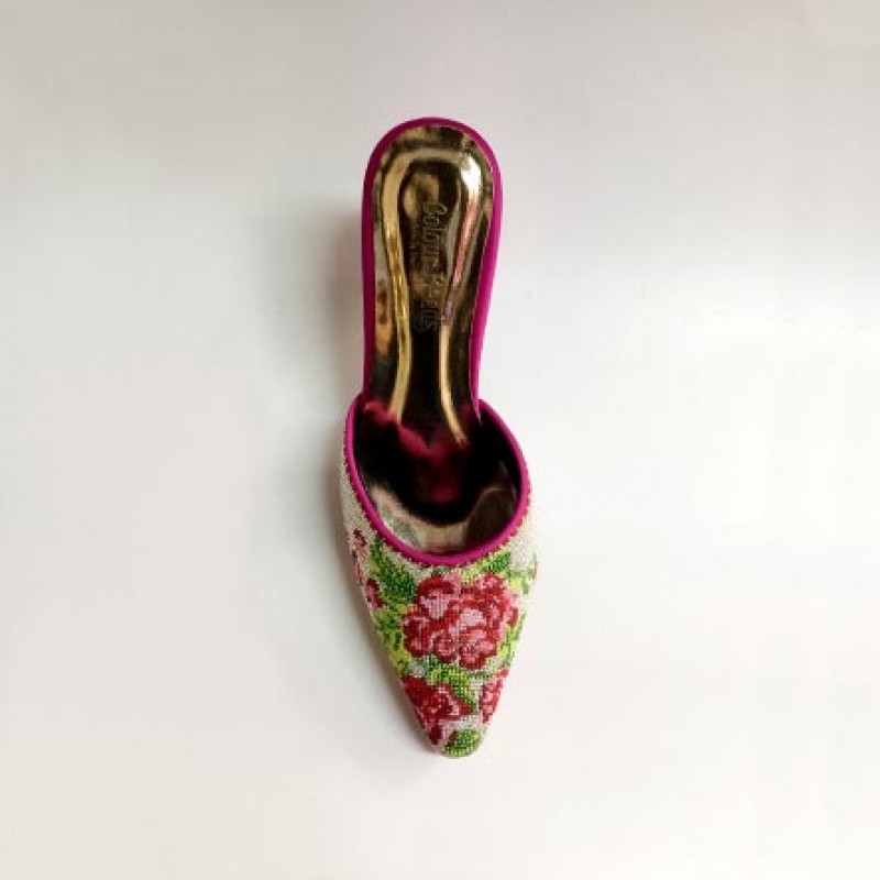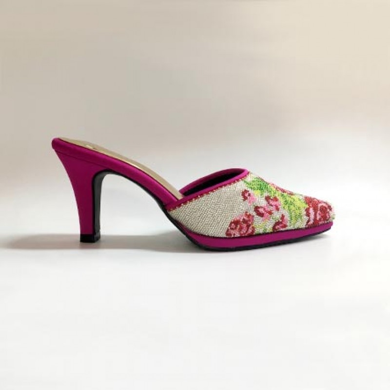 The materials used include Silk cloth, thread and multi coloured Tiny glass beads.