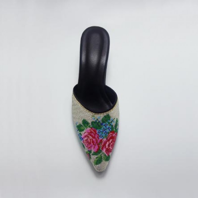The materials used include Leather, thread and multi coloured Tiny glass beads.