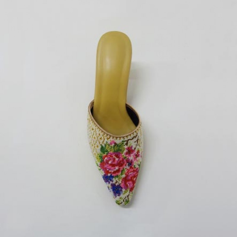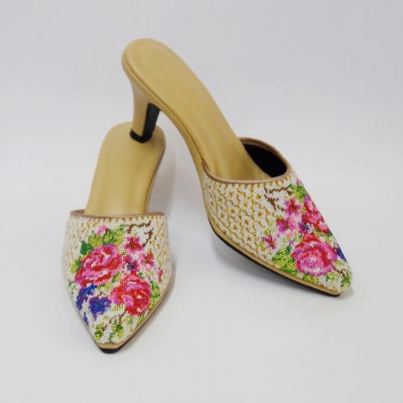 The materials used include Leather, thread and multi coloured Tiny glass beads.