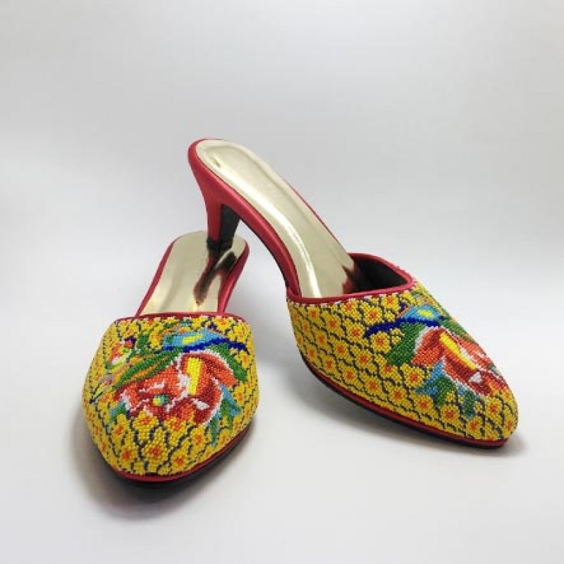 The materials used include Silk cloth, thread and multi coloured Tiny glass beads.