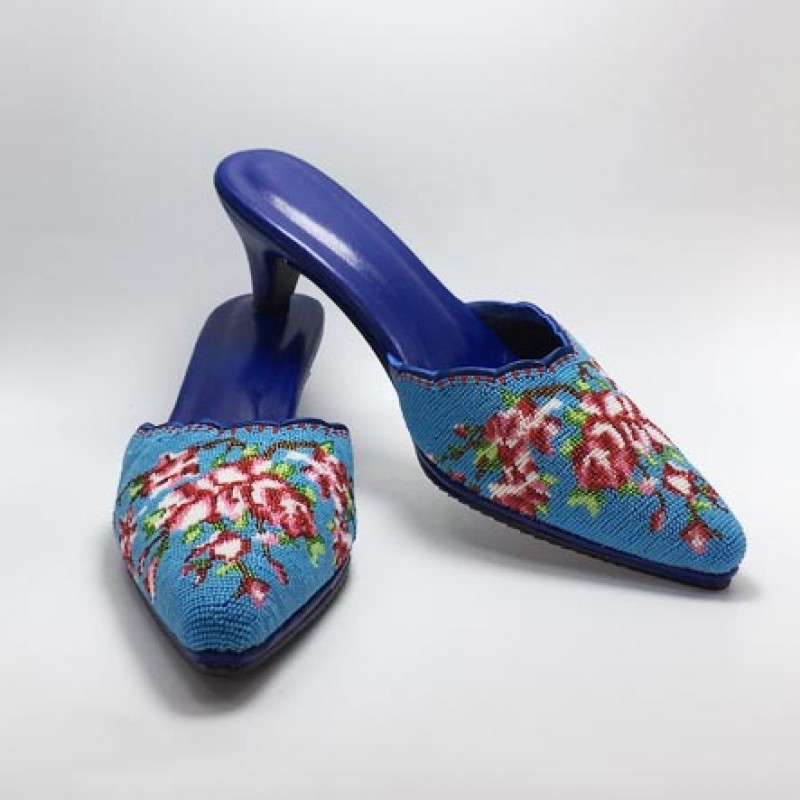 The materials used include Leather, thread and multi coloured Tiny glass beads.