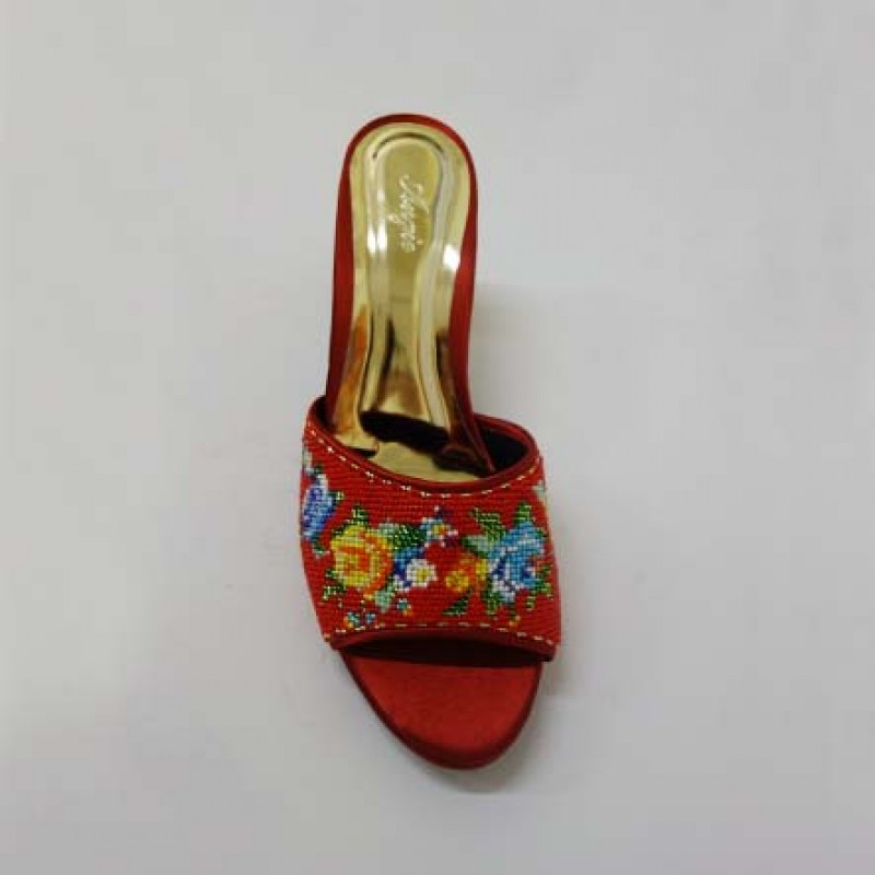 The materials used include Silk cloth, thread and multi coloured glass beads.