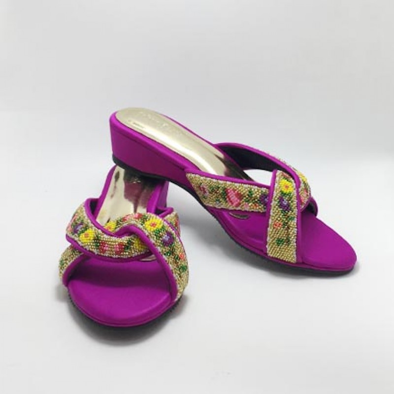 The materials used include Silk cloth, thread and multi coloured glass beads.