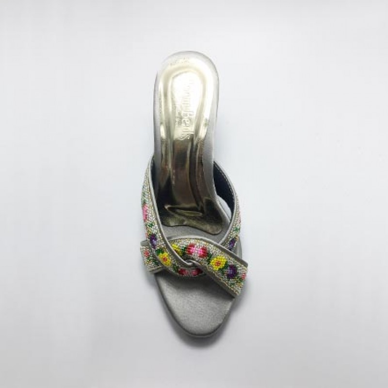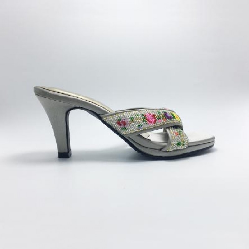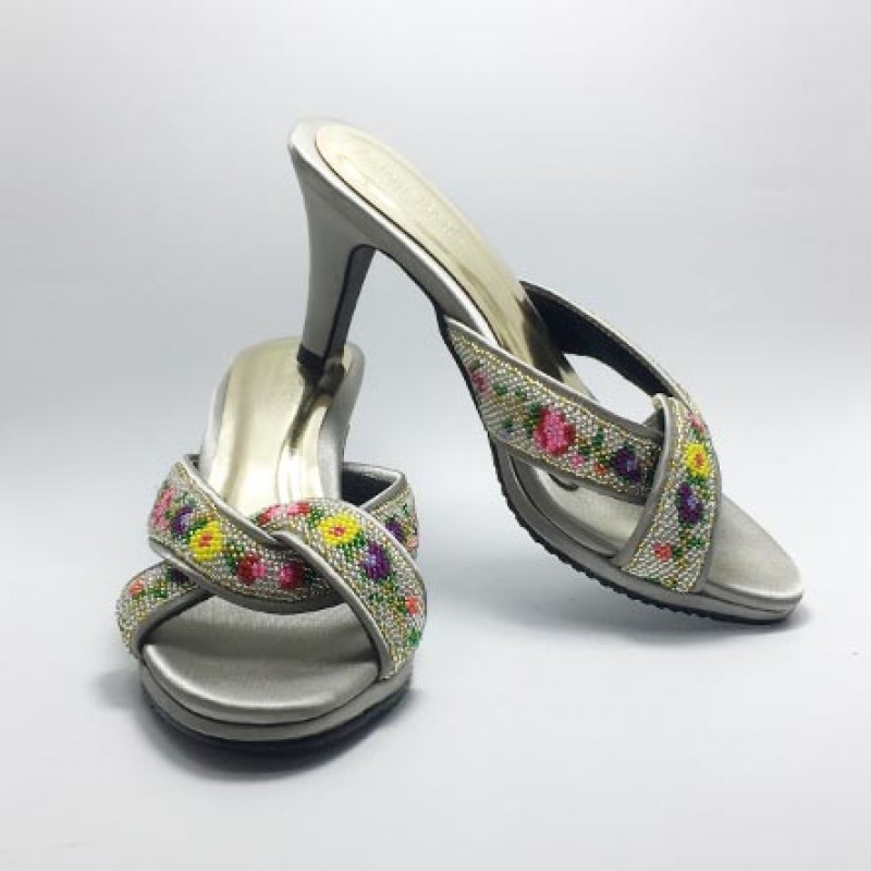 The materials used include Silk cloth, thread and multi coloured glass beads.