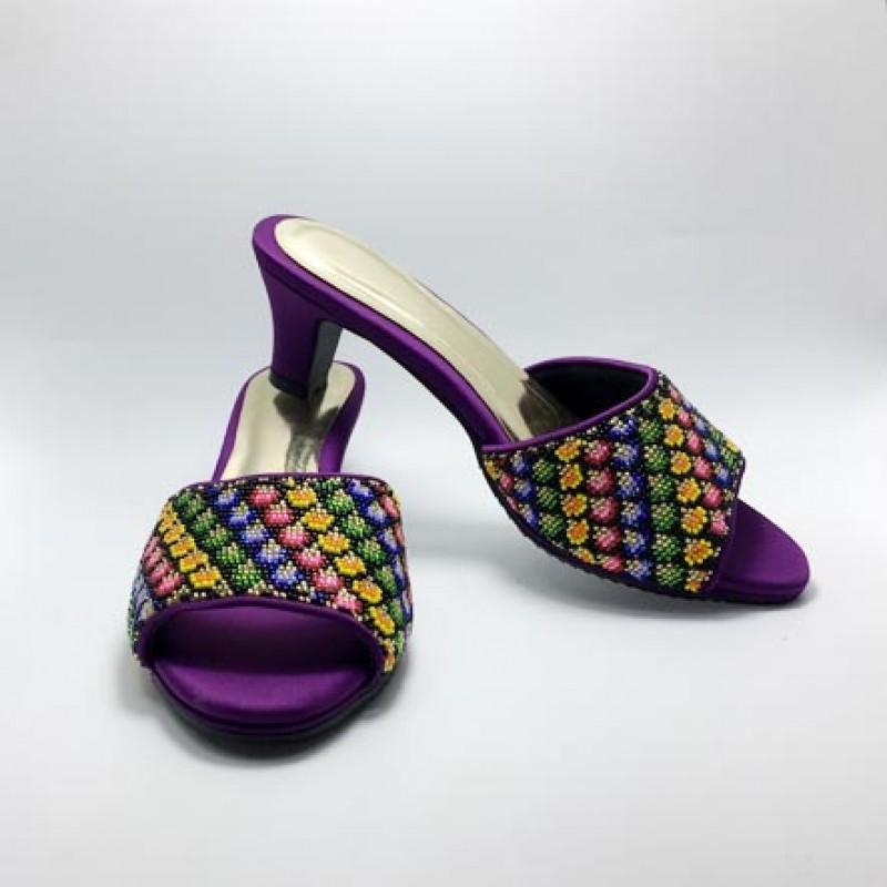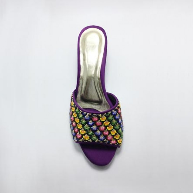The materials used include Silk cloth, thread and multi coloured glass beads.