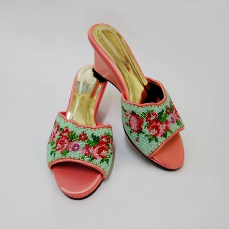 The materials used include Silk cloth, thread and multi coloured glass beads.