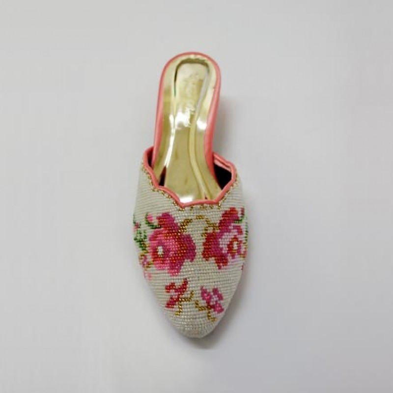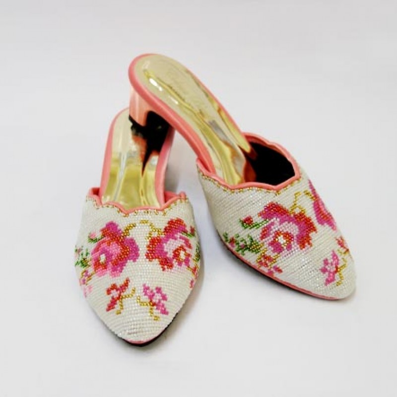 The materials used include Silk cloth, thread and multi coloured glass beads.