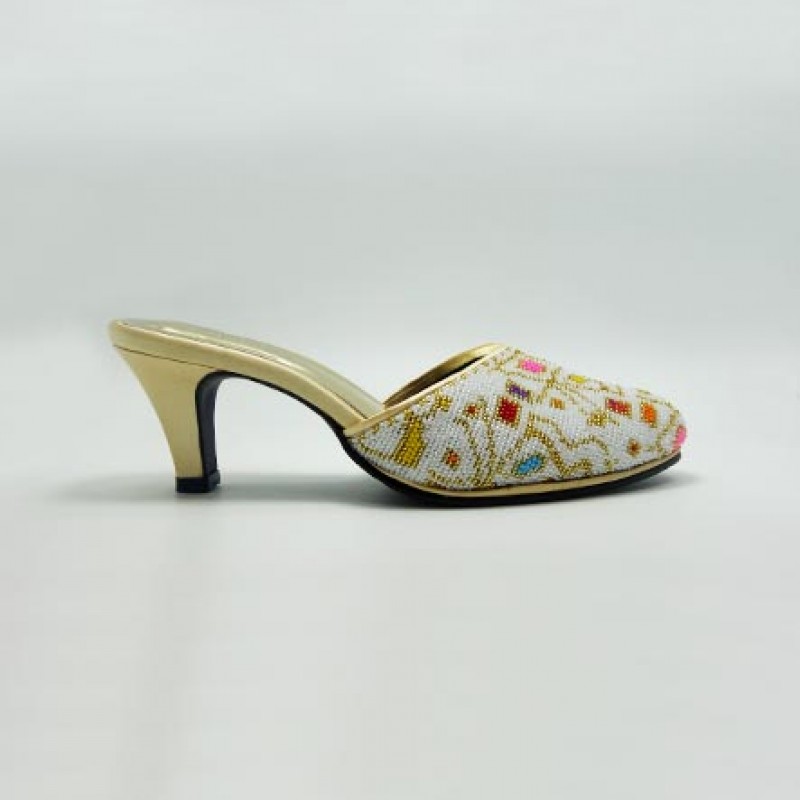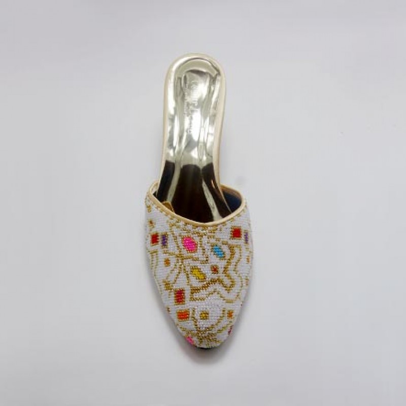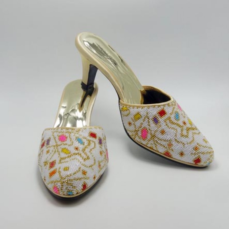 The materials used include Silk cloth, thread and multi coloured glass beads.