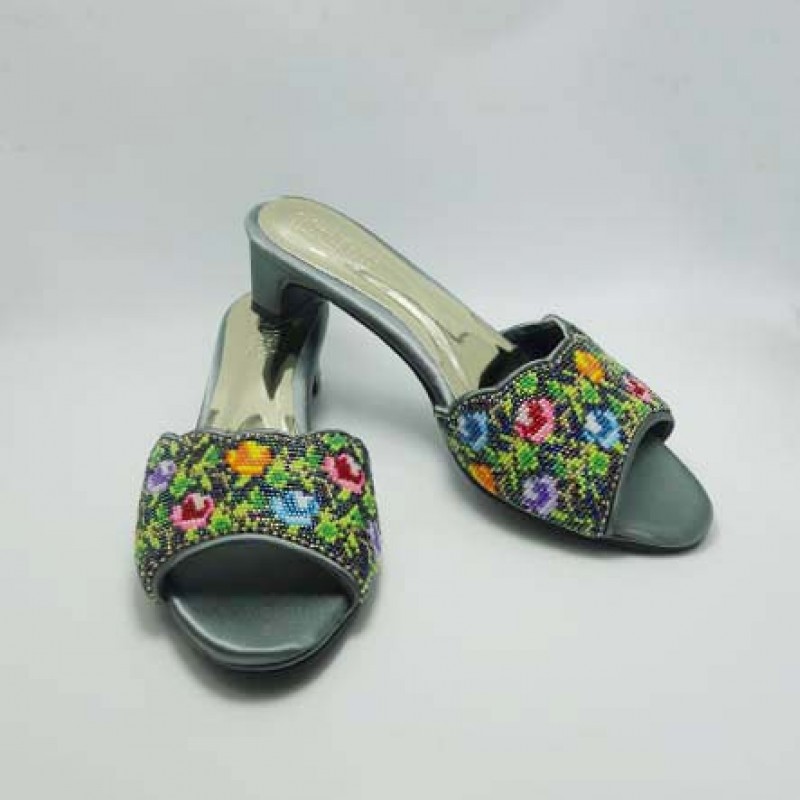 The materials used include Silk cloth, thread and multi coloured glass beads.