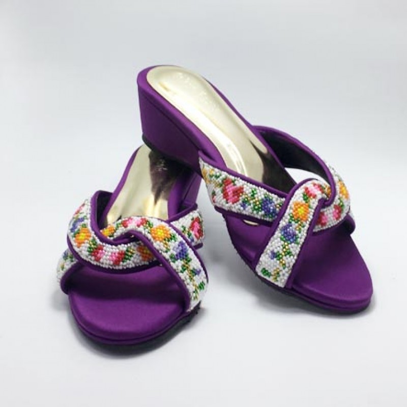The materials used include Silk cloth, thread and multi coloured glass beads.